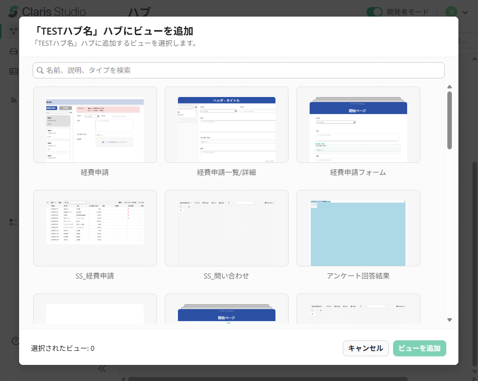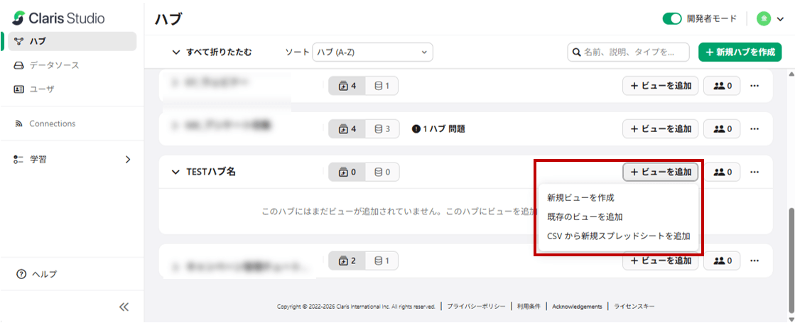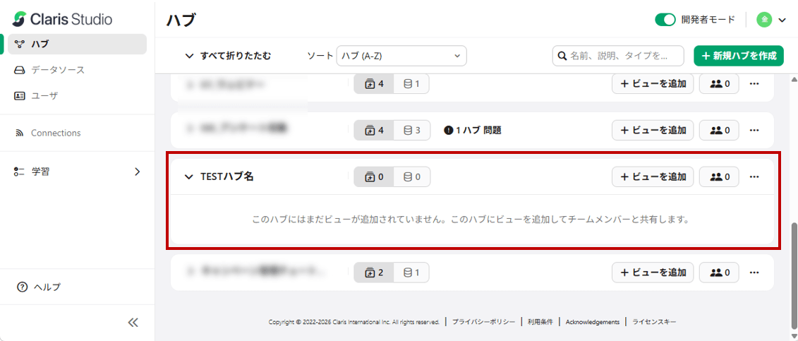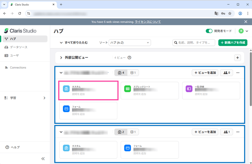 Claris Studio では、同一のビューを複数のハブに所属させることが可能です。